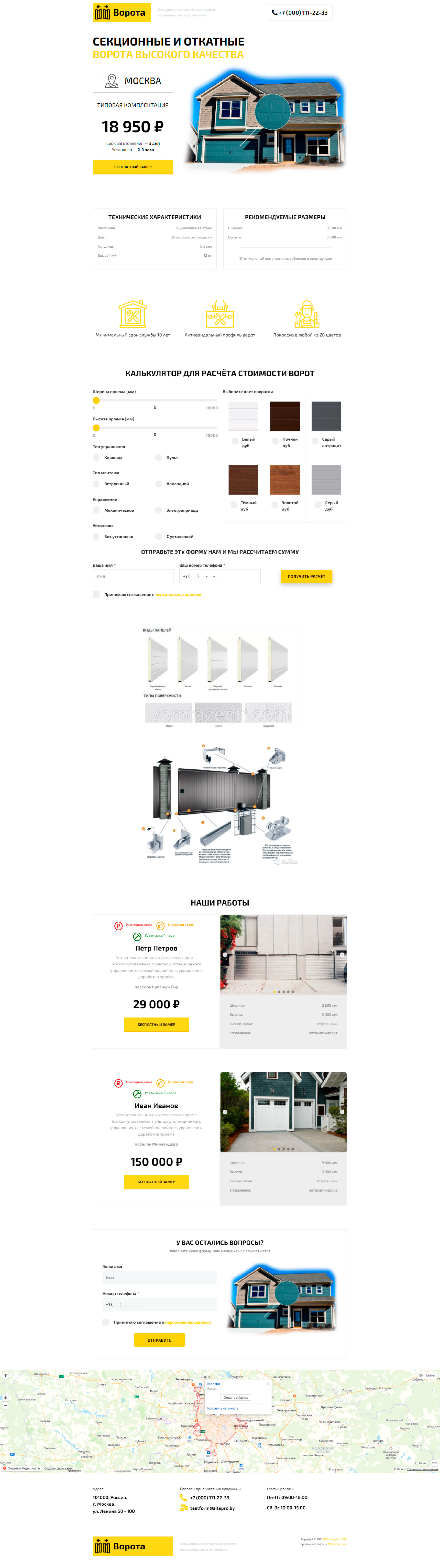Закажите готовый продающий сайт лендинг #2001201 в Сочи за 1-3 дня «под ключ»: свёрстан, отрисован и готов к рекламе. Тематика шаблона «Секционные и откатные ворота производство и установка».