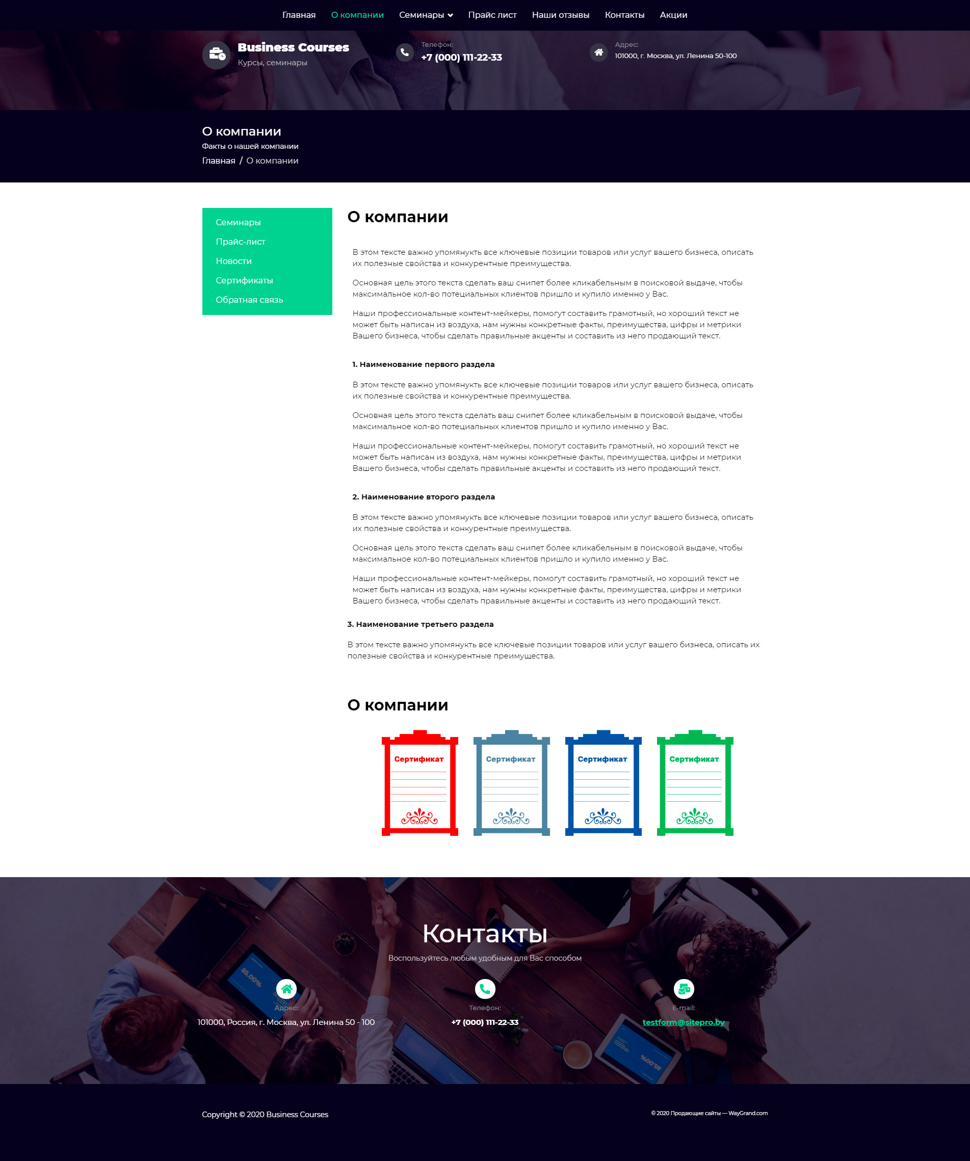 Закажите готовый продающий сайт визитка #1448303 в Сочи за 5-7 дня «под ключ»: свёрстан, отрисован и готов к рекламе. Тематика шаблона «Бизнес курсы и семинары».