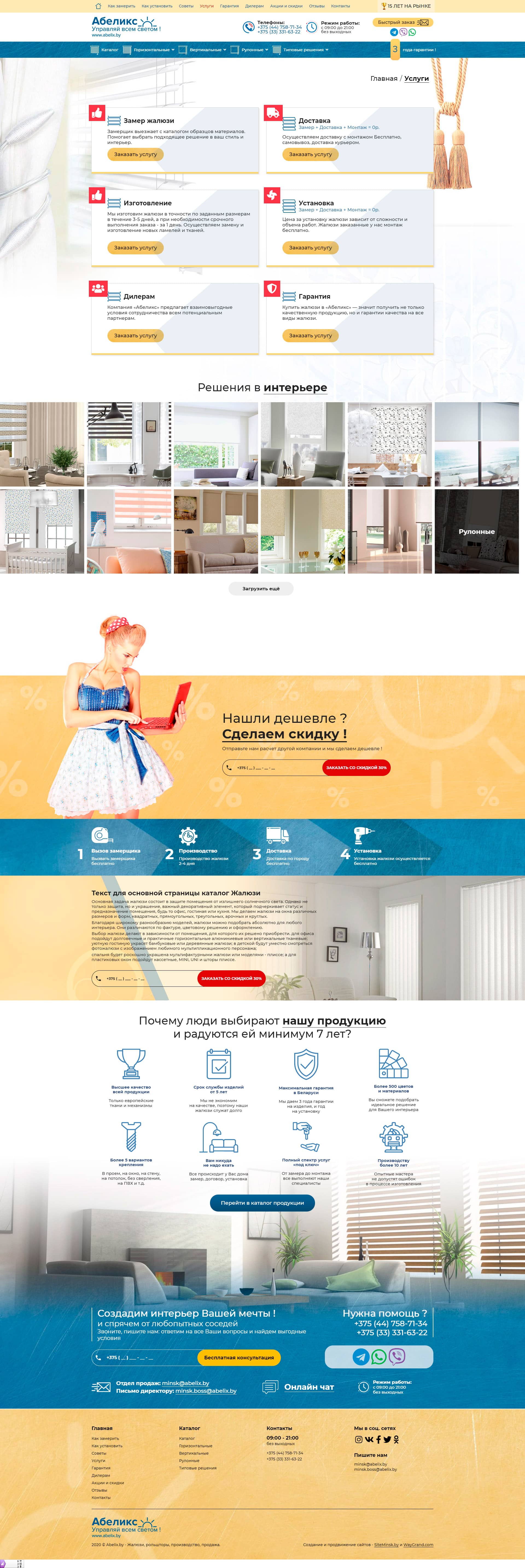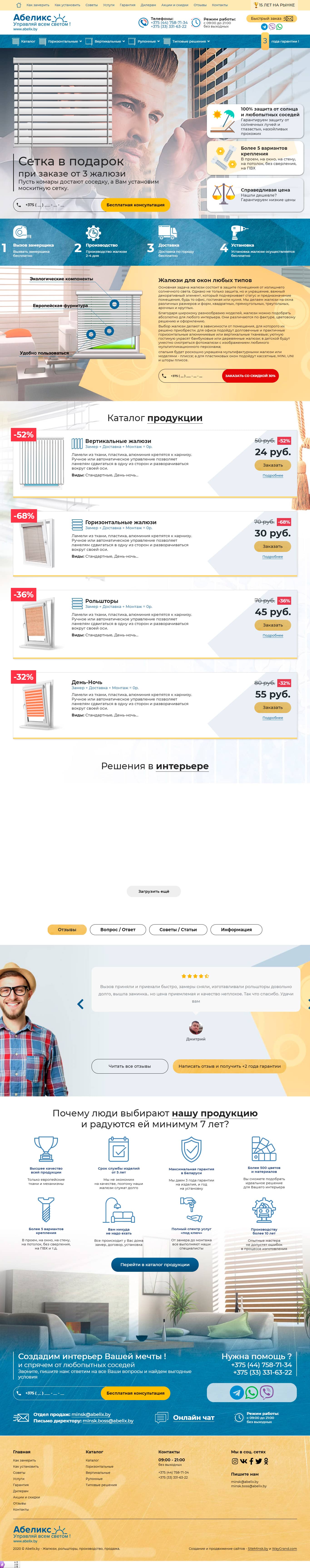 Разработали авторский сайт по тематике жалюзи и рольшторы под заказ за 35 дней.