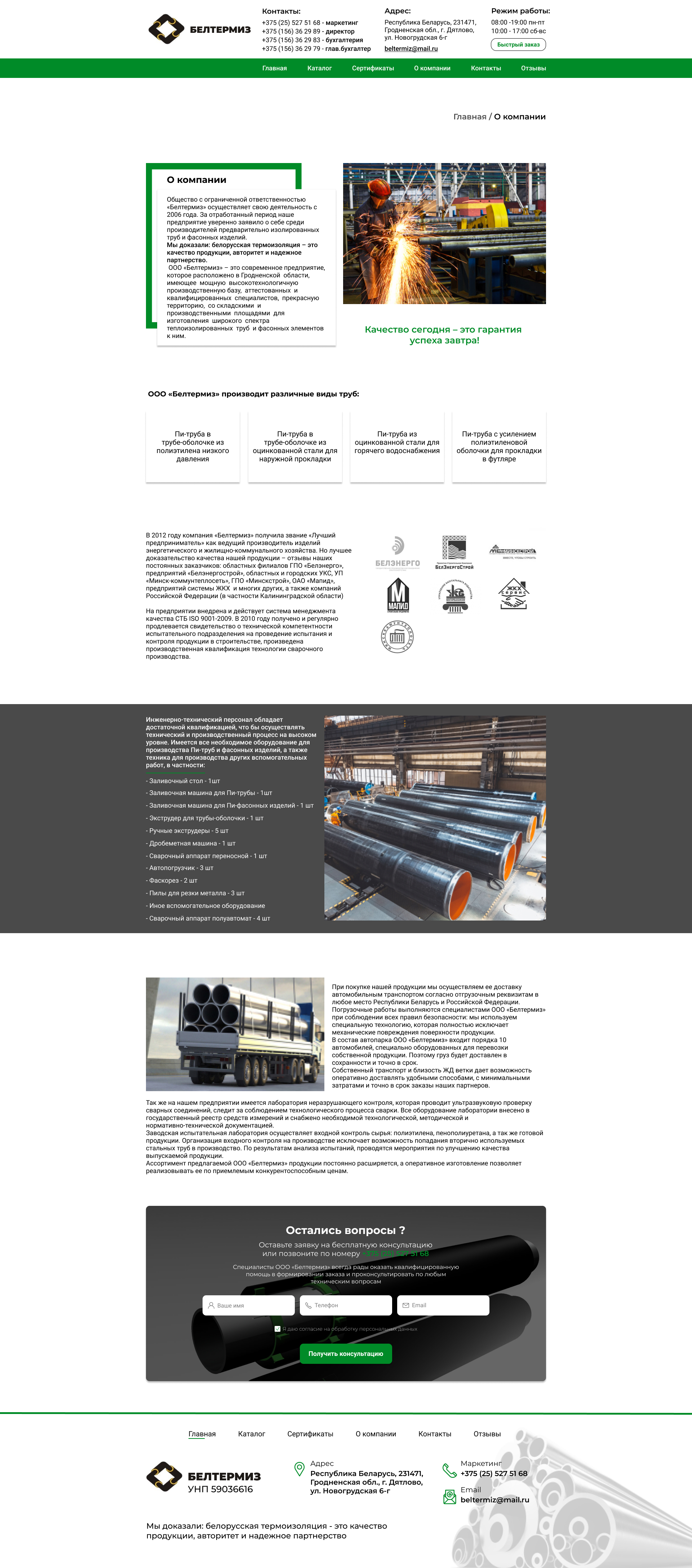 Закажите готовый продающий сайт визитка #141 в Сочи за 5-7 дня «под ключ»: свёрстан, отрисован и готов к рекламе. Тематика шаблона «Производство ПИ-труб».