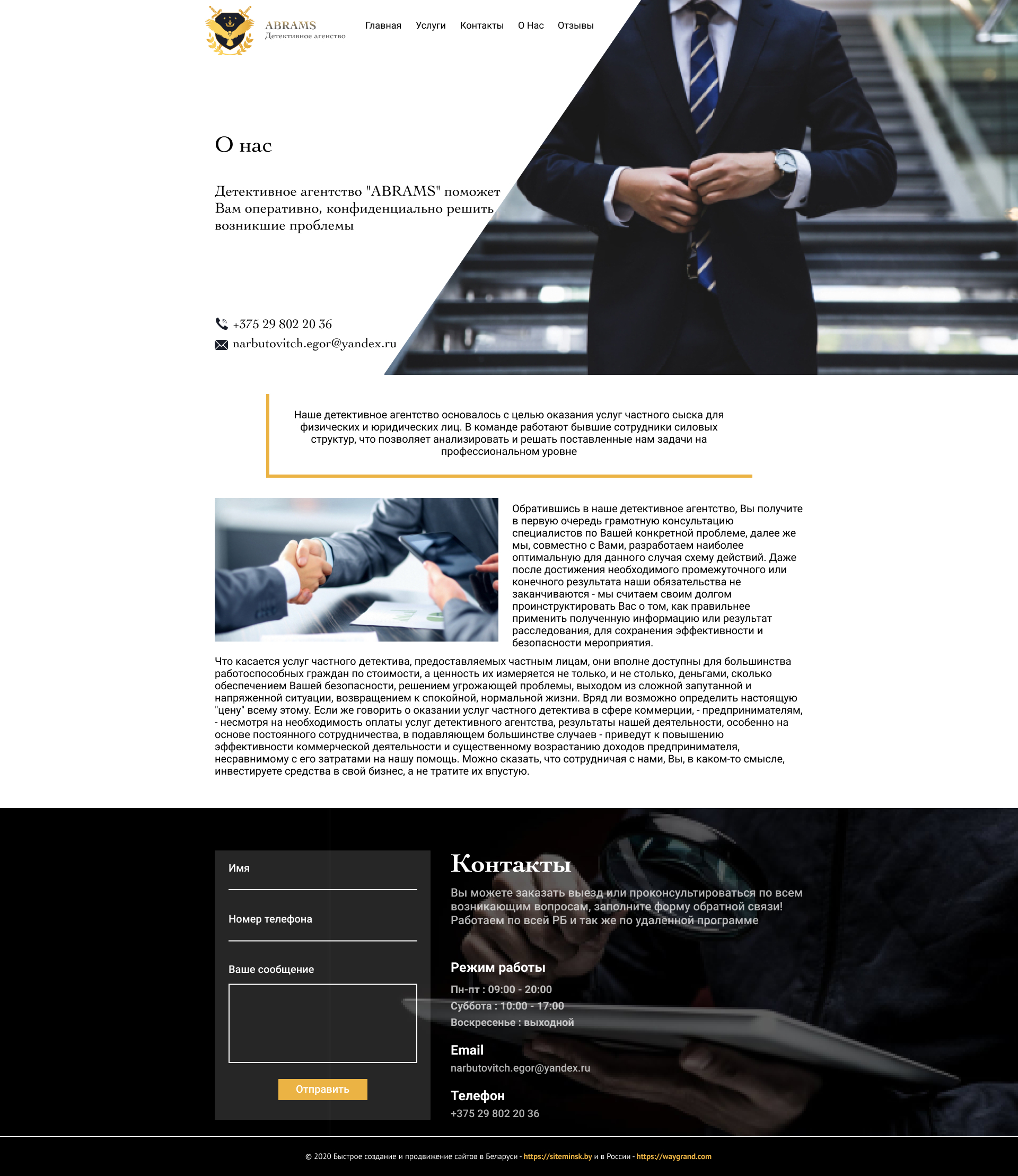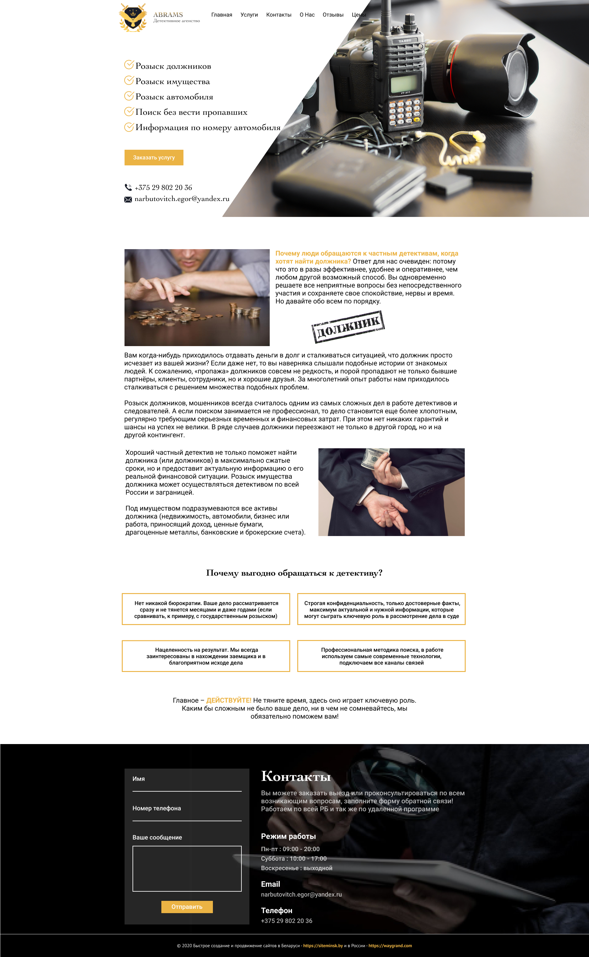 Закажите готовый продающий сайт визитка #239 в Сочи за 5-7 дня «под ключ»: свёрстан, отрисован и готов к рекламе. Тематика шаблона «Частное детективное агентство».